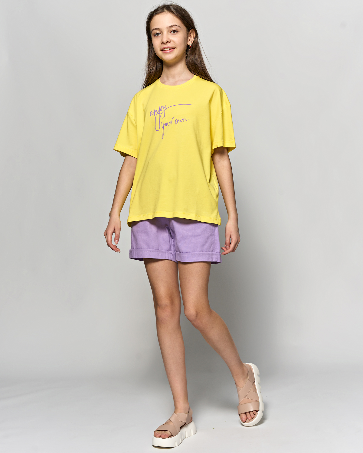 Футболка Cegisa свободного кроя для девочки оптом выполнена из высококачественного материала кулирка с добавлением эластана. Приятная на ощупь ткань футболки с принтом не потеряет свой первоначальный вид после множества стирок. Футболка на девочку хорошо пропускает воздух и не закатывается. Модель свободного силуэта не сковывает движения и комфортна в носке. Стильная и милая дизайнерская печать прекрасно дополнит образ. Футболка оверсайз отлично подходит для повседневной носки, физкультуры или дома.