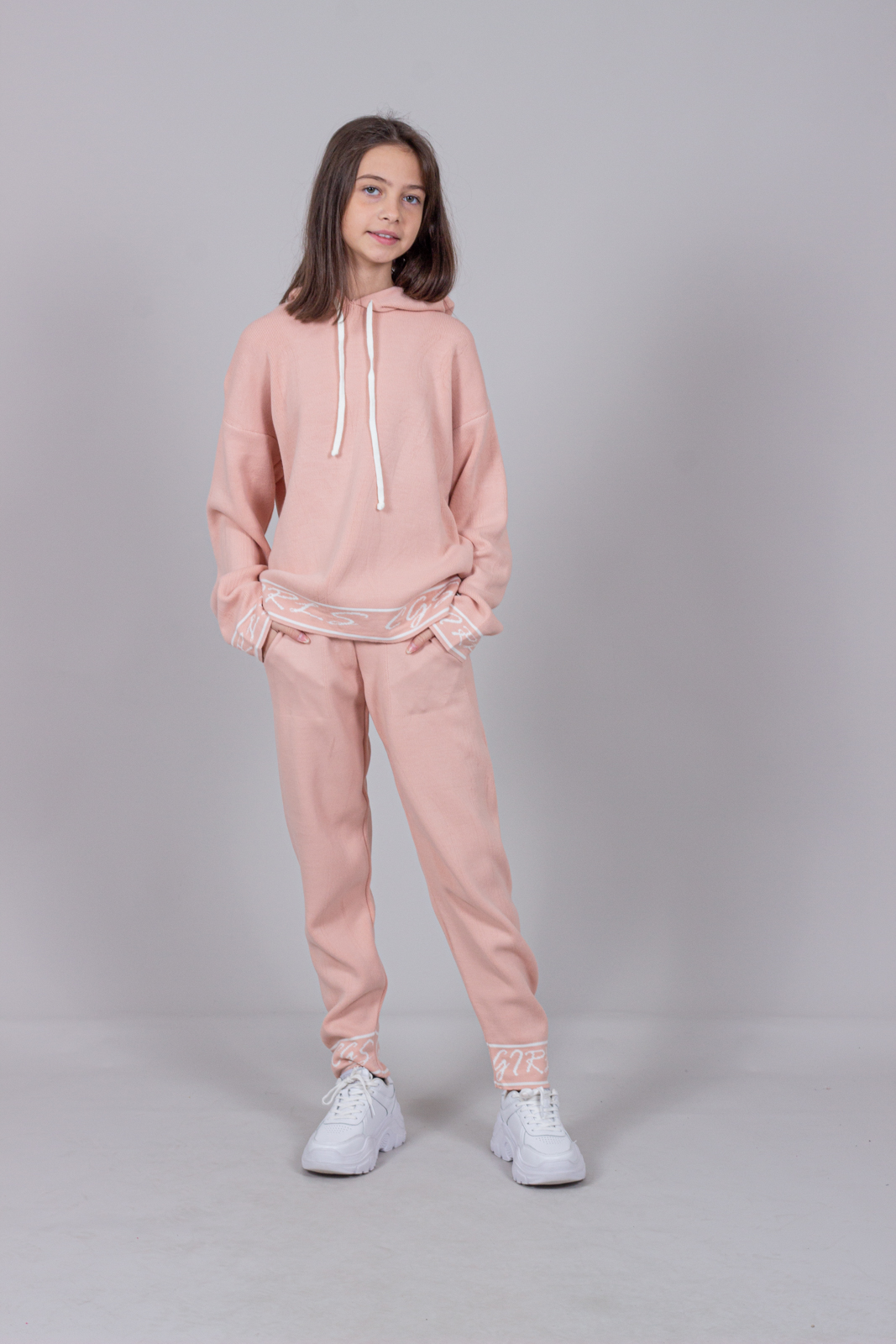 Трикотажный костюм для повседневной жизни выполнен из качественной турецкой пряжи. Костюм смотрится элегантно и стильно, отлично подходит для дома и отдыха.