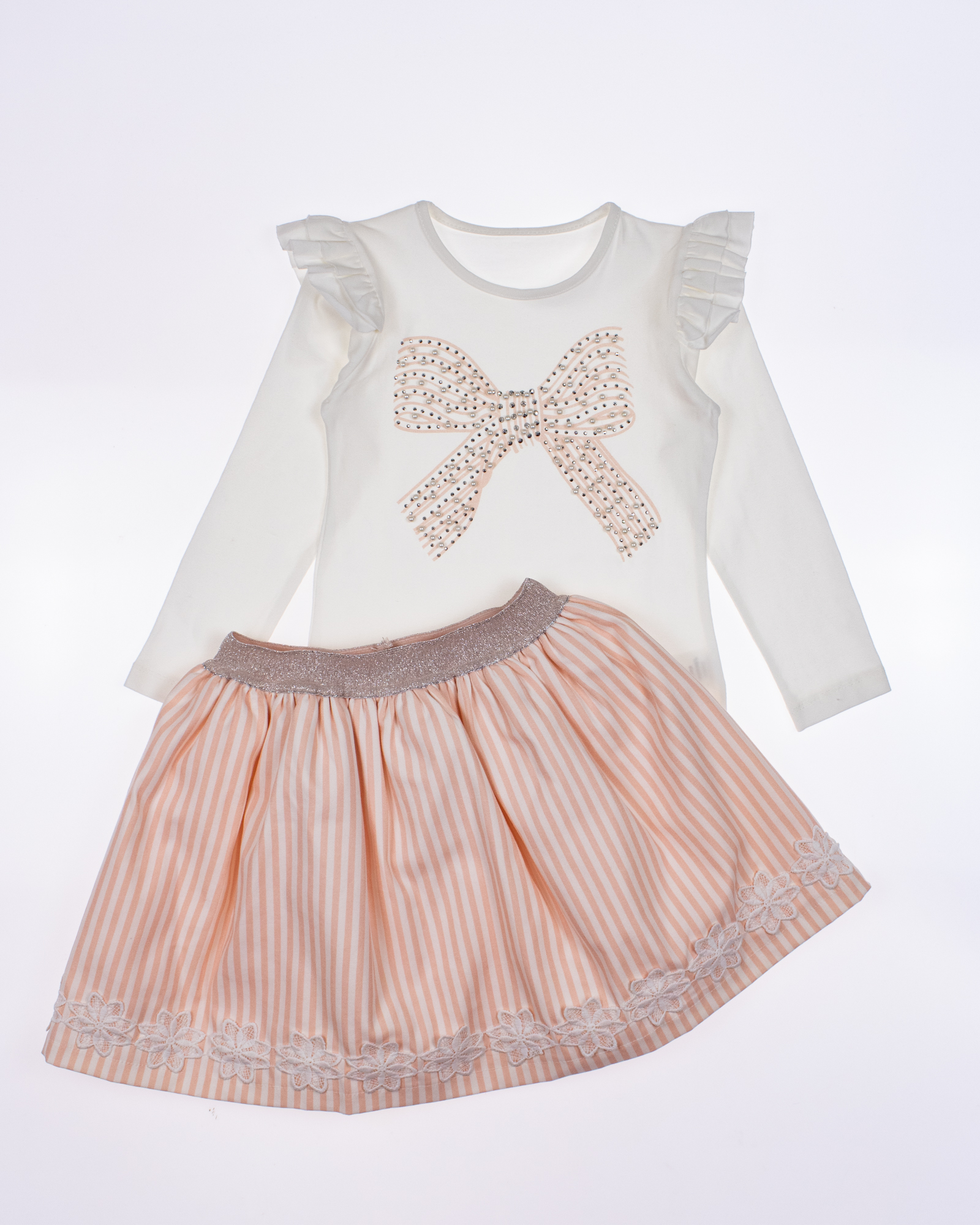 Этот нарядный костюм для девочки NEON оптом является уникальным предложением на рынке детской моды. Он произведен в Турции, известной своим качеством и безупречным стилем. Костюм состоит из футболки с длинными рукавами, которые украшены нежными крыльями, создающими впечатление легкости и изящества. На груди футболки расположен принт, который придает еще больше индивидуальности этому наряду. Кроме того, принт дополнен красивыми бусинамии и сверкающими стразами, что добавляет роскоши и шарма. Юбка этого костюма также привлекает внимание. Она имеет широкую блестящую резинку, которая обеспечивает идеальную посадку на талии. Юбка сама по себе пышная и держит форму благодаря дополнительной юбке из сетки и хлопковому подъюбнику. Такое решение не только придает объему юбке, но и создает особый эффект при движении. Нарядный костюм для девочки NEON оптом - это прекрасный выбор для тех, кто хочет предложить своим маленьким модницам особенный наряд на торжество или другое важное событие.