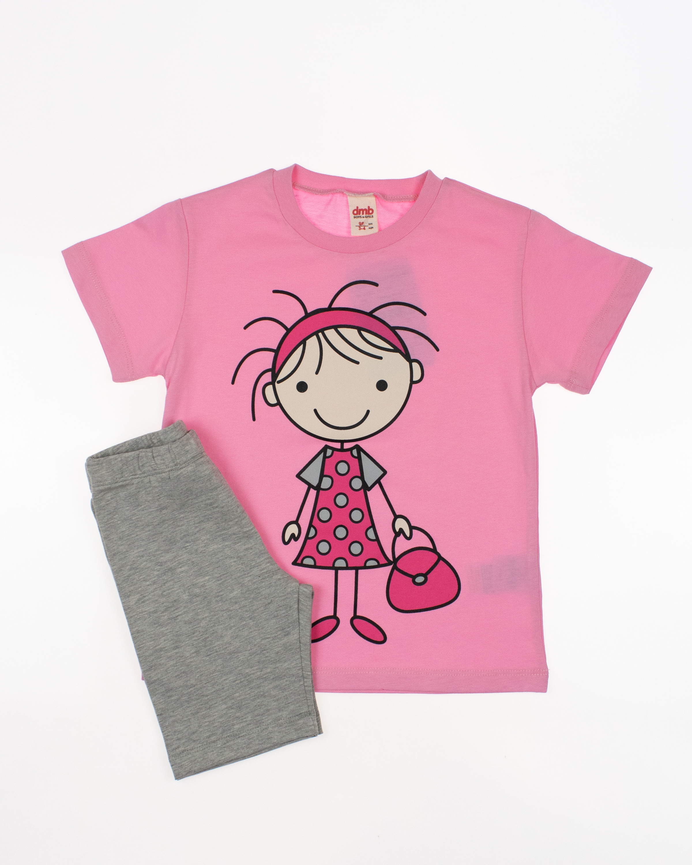 Детский костюм торговой марки DMB - это отличный выбор для маленькой модницы! Произведенный в Турции из высококачественного трикотажа кулирка, этот костюм обеспечивает комфорт и удобство на целый день. Приталенный крой делают эту футболку стильной и современной. Принт на передней части футболки придает ей яркость и оригинальность. Этот костюм подойдет как для повседневной носки, так и для активного отдыха на свежем воздухе. А оптовая цена делает его отличным выбором для магазинов и интернет-магазинов детской одежды. Порадуйте малышей качественной и стильной одеждой от DMB !
