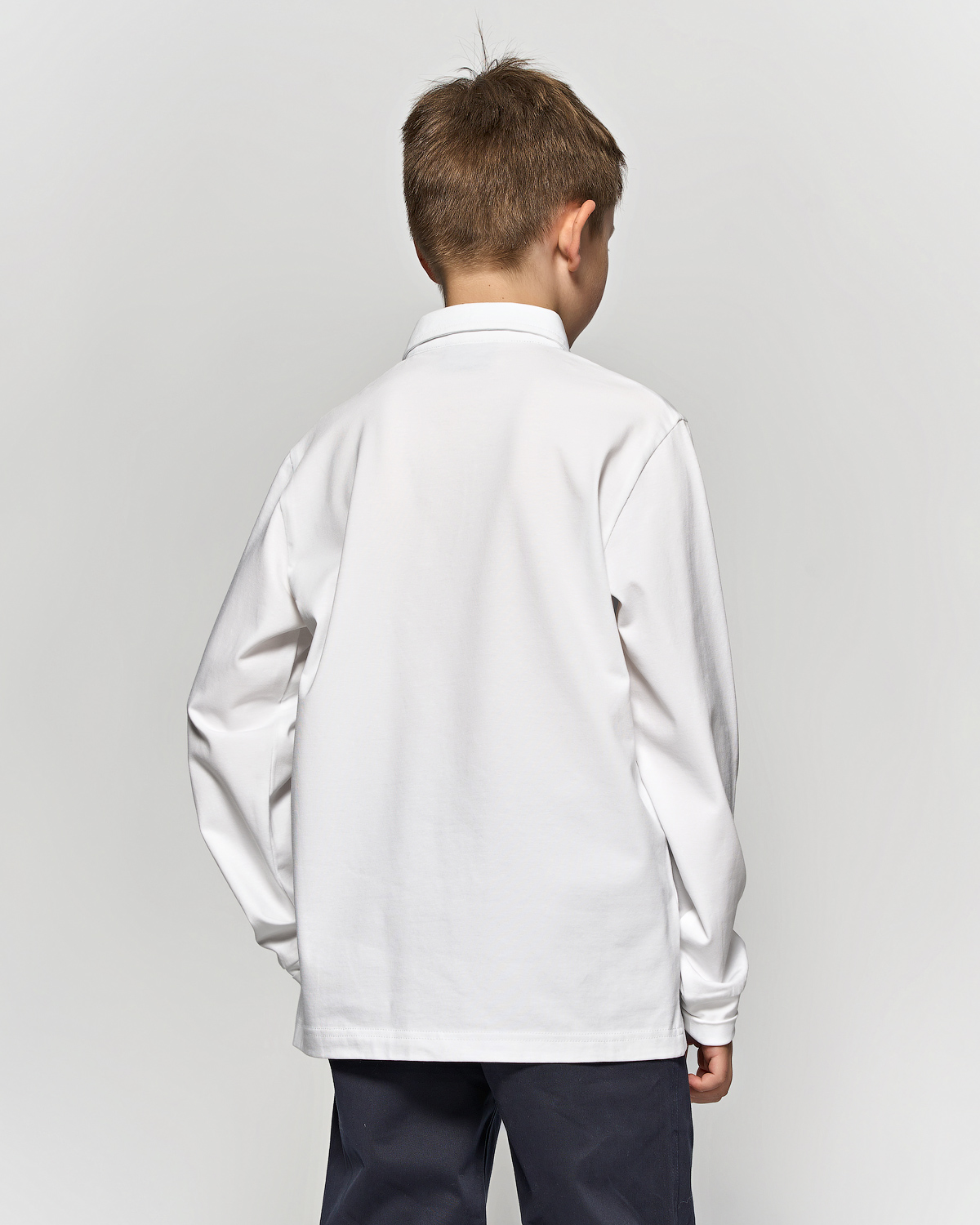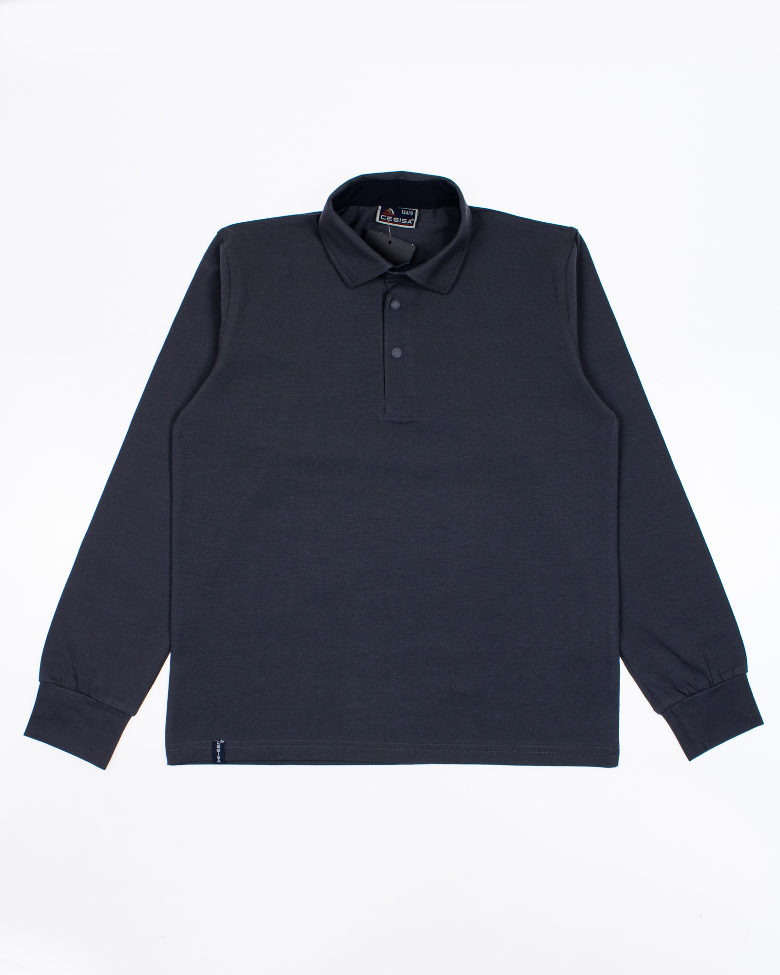 Однотонная рубашка- поло  для мальчика Cegisa оптом. Поло прямого кроя  с застежкой -кнопки. Изготовлена из натурального трикотажного хлопка. Модель с длинными рукавами пркрасный вариант для школы.
