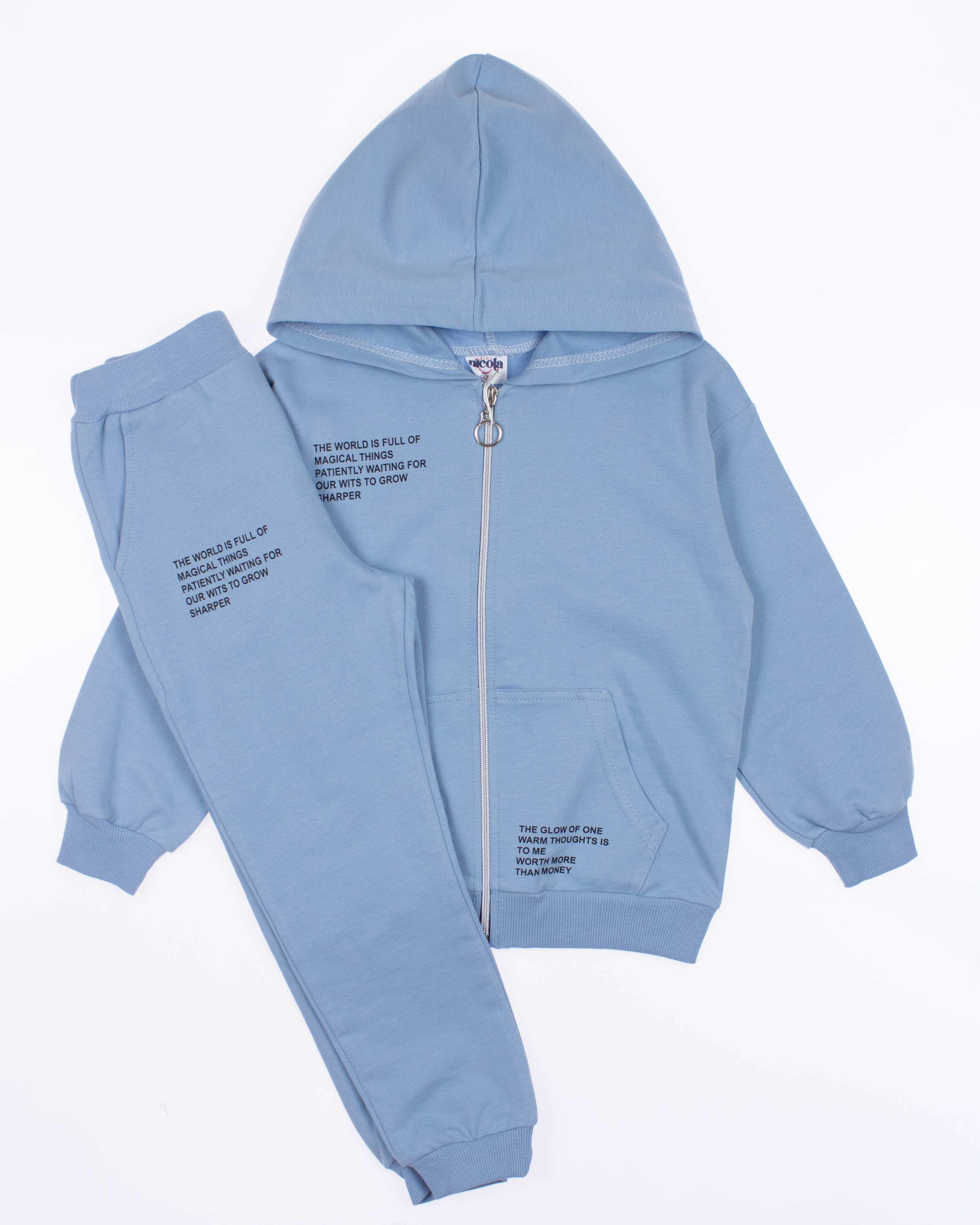 Универсальный костюм PICOLA BABY можно носить как домашнюю одежду  или  как одежду на каждый день. Брюки  имеют  эластичные манжеты на поясе и щиколотках и это очень хорошо, ведь они будут идеально сидеть по фигуре и не стеснять  движения ребенка. Трикотажные детский костюм безусловно должен быть удобными и для этого в моделях используются мягкие ткани которые еще и будут создавать приятные ощущения на коже. Это универсальная вещь которая должна быть в гардеробе. Костюм выполнен из трикотажа футер (петля).
