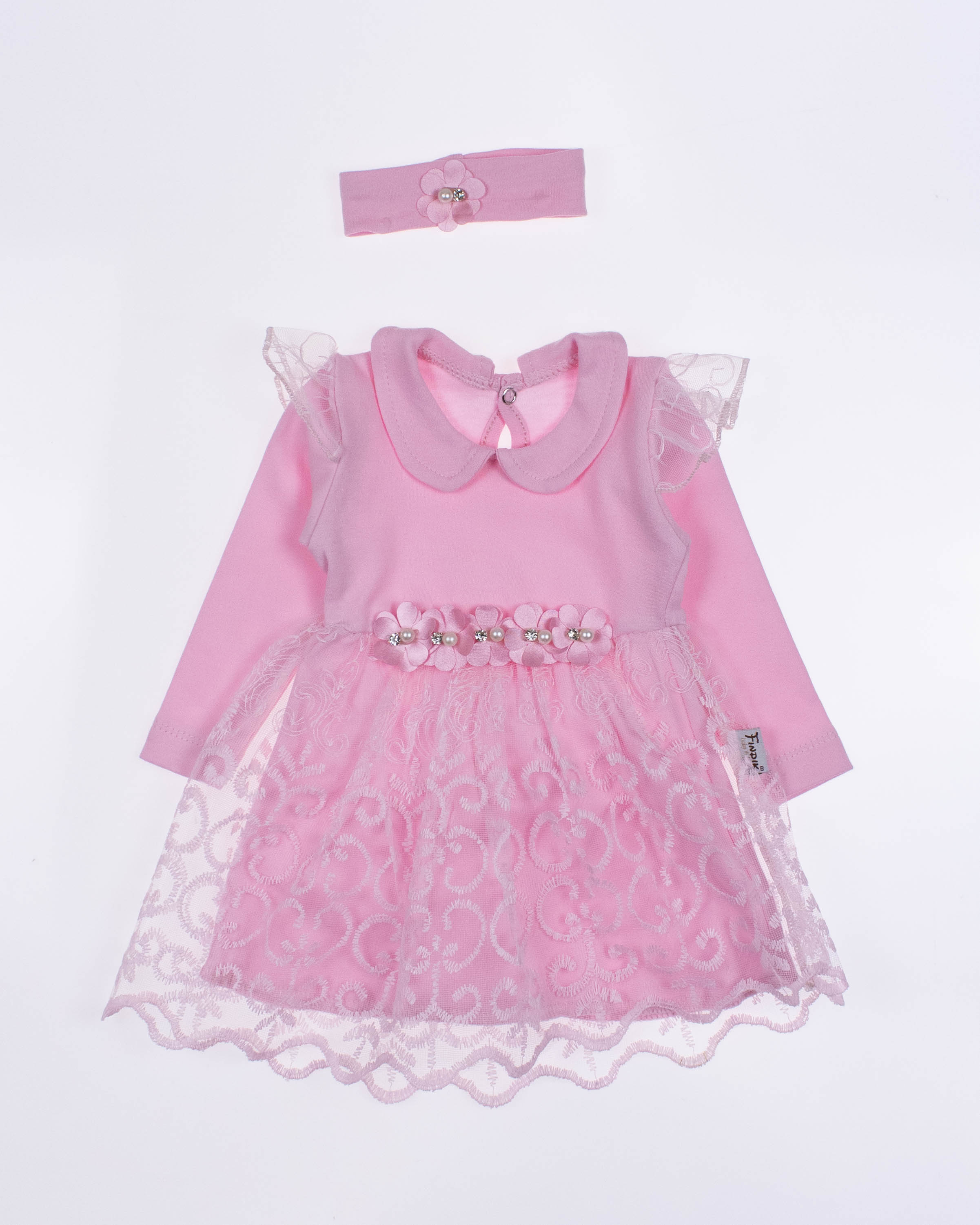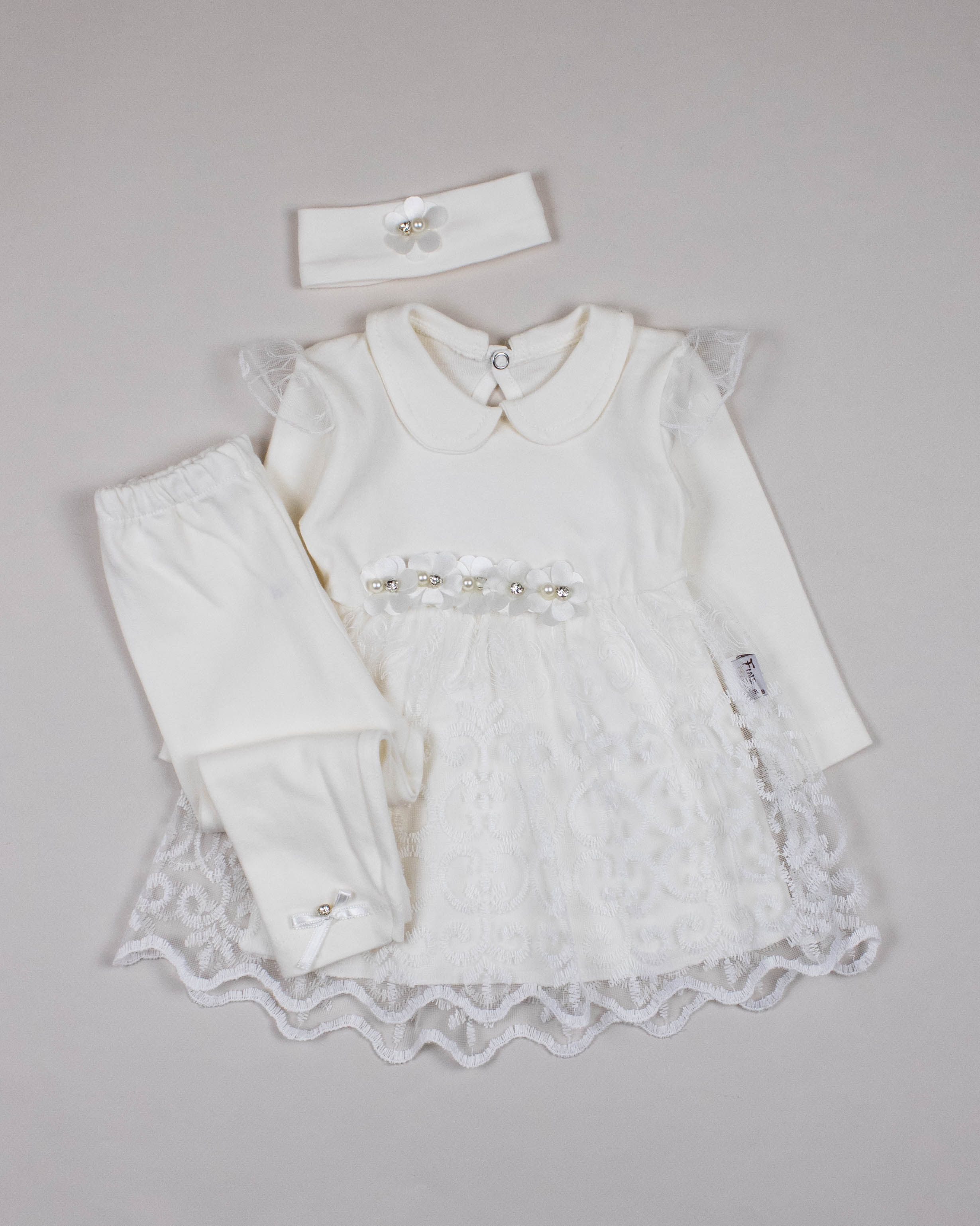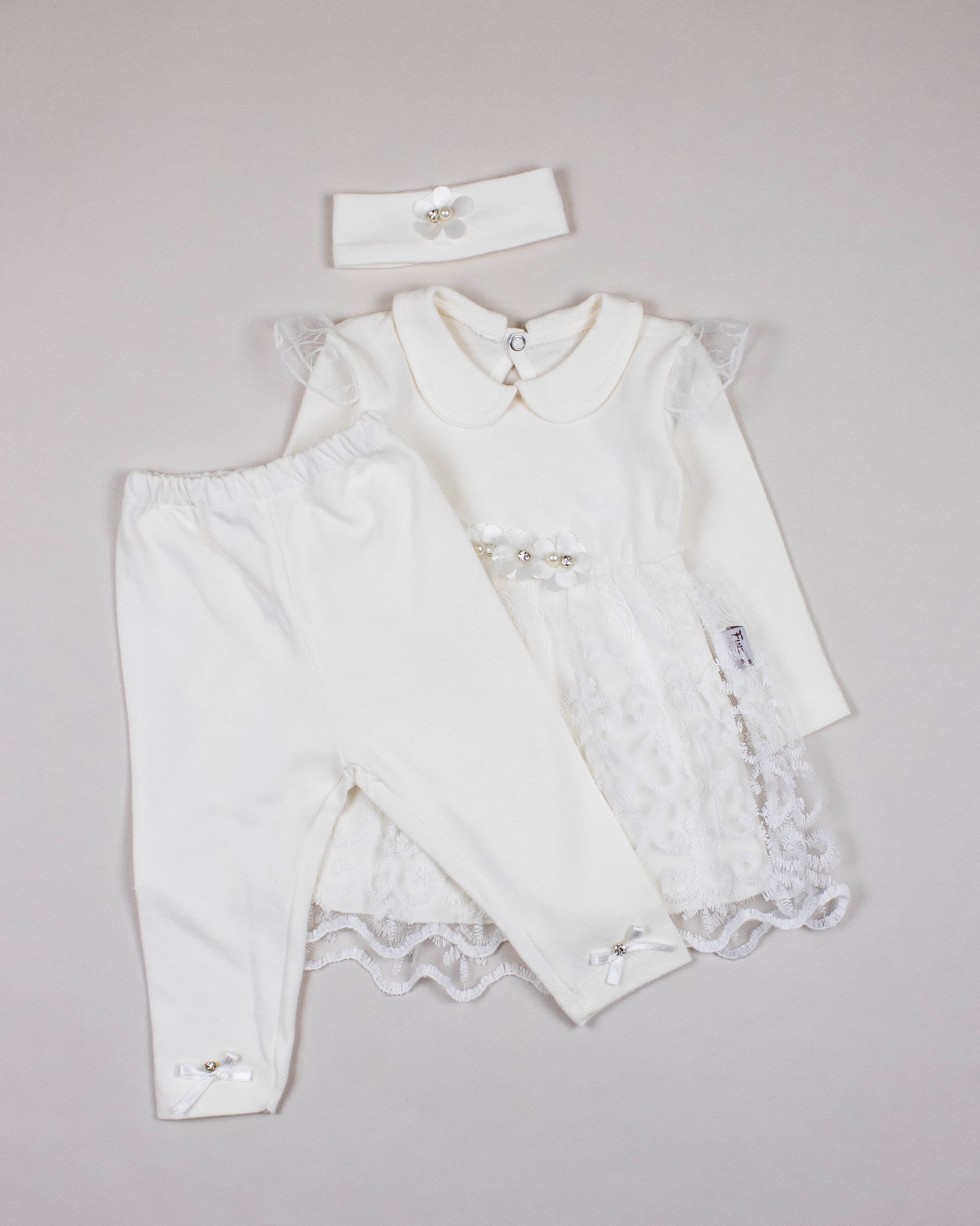 Костюм FINDIK оптом для новорожденного ребенка изготовлен из 100% хлопка с отделкой из сетки с вышивкой и декором из страз.