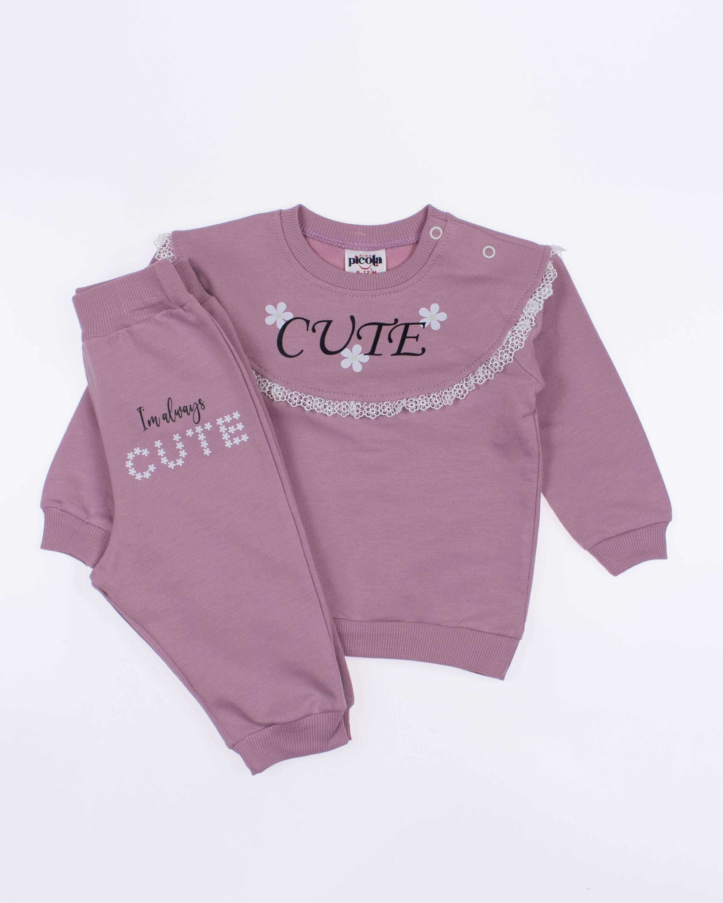 Мы предлагаем оптовые продажи детской одежды производства Турция. Хлопковый костюм PICOLA  выполнен из 100% хлопка, что гарантирует комфорт и безопасность для самых маленьких детей. Свитшот имеет удобную застежку-кнопки на плече, что облегчит процесс надевания и снятия одежды. Штанишки с мягкими манжетами на эластичном поясе идеально подходят для ношения с подгузником, обеспечивая свободу движений и комфорт. Детский милый принт на костюме поможет развить фантазию и воображение ребенка, делая его образ ярким и запоминающимся. Костюм PICOLA - отличный выбор для маленьких модниц и их заботливых родителей. Не упустите возможность приобрести этот уникальный товар оптом по выгодной цене!