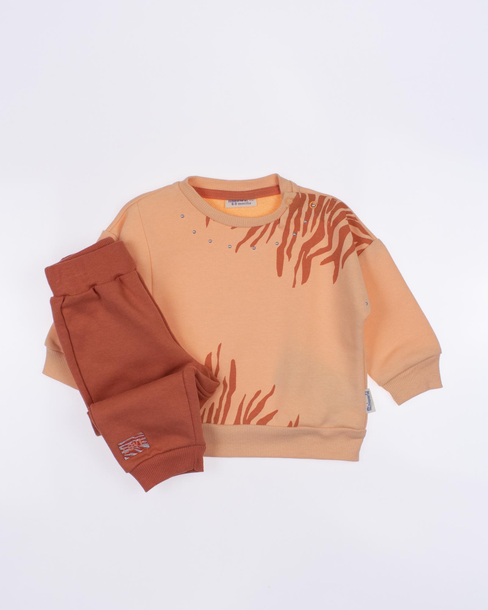 Мы предлагаем оптовые продажи детской одежды производства Турция. Хлопковый костюм MINIWORLD выполнен из футера (петля), что гарантирует комфорт и безопасность для самых маленьких детей. Свитшот имеет удобную застежку-кнопки на плече, что облегчит процесс надевания и снятия одежды. Штанишки с мягкими манжетами на эластичном поясе идеально подходят для ношения с подгузником, обеспечивая свободу движений и комфорт. Детский милый принт на костюме поможет развить фантазию и воображение ребенка, делая его образ ярким и запоминающимся. Костюм MINIWORLD - отличный выбор для маленьких модников и их заботливых родителей. Не упустите возможность приобрести этот уникальный товар оптом по выгодной цене!