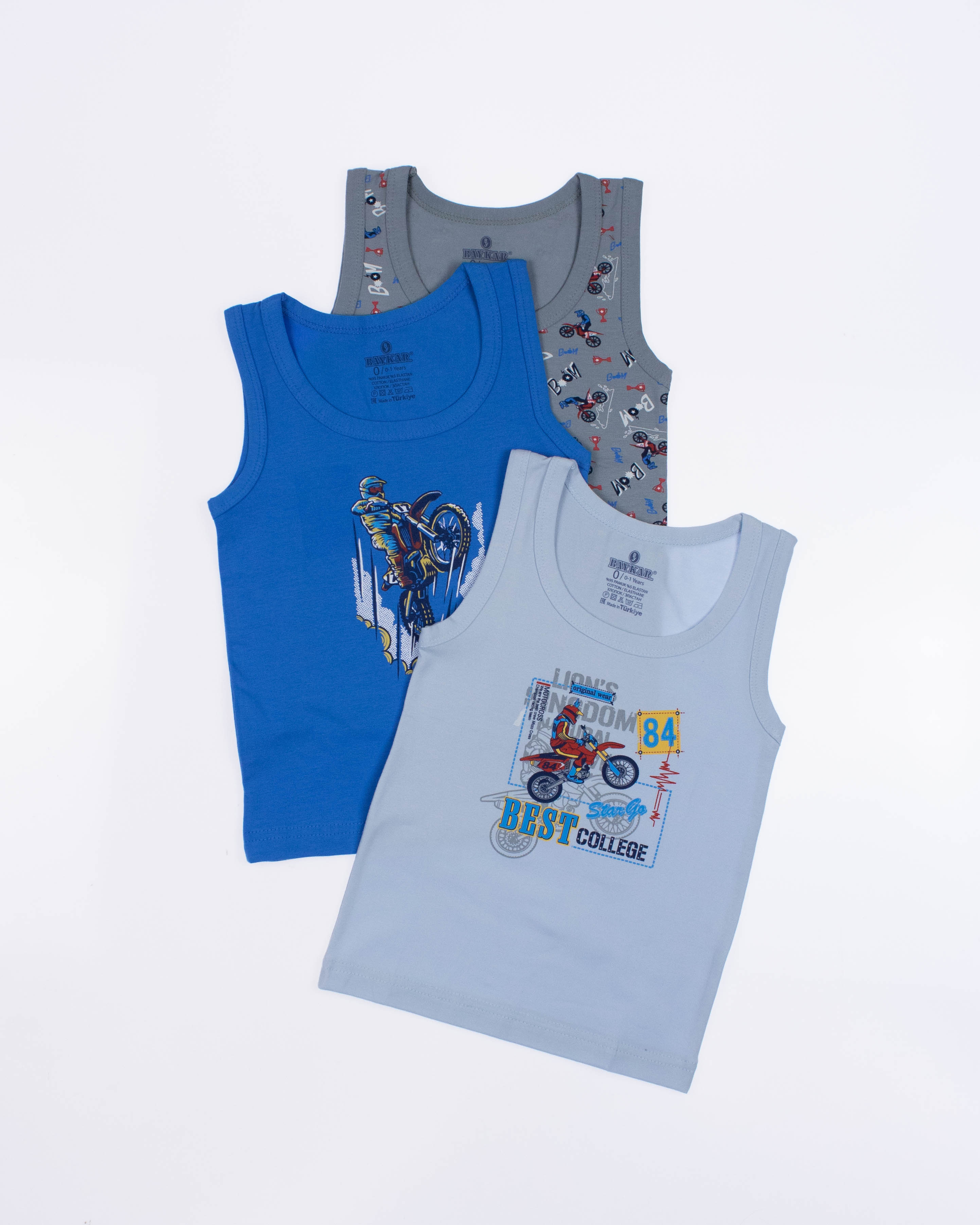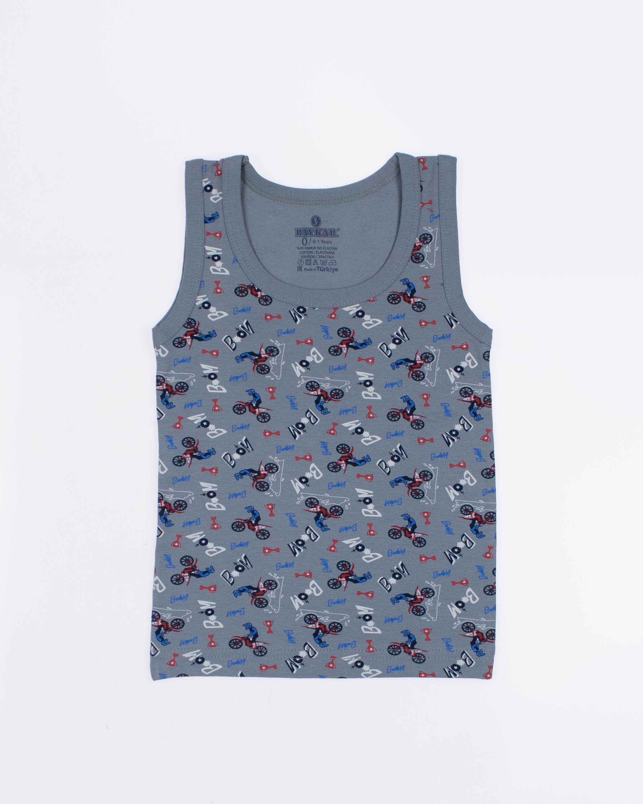Майка для мальчика  от турецкого бренда BAYKAR оптом- это гарантия комфорта, практичности и стильного дизайна. Изделия изготовлены из качественного хлопкового трикотажного полотна с добавлением прочной эластановой нити, не требуют особого ухода, не линяют и не растягиваются после стирки. Особенности моделей - классический крой, популярные расцветки и принты - делают майки универсальными в носке: их можно использовать как нательное белье, домашнюю одежду или как часть повседневного летнего гардероба.