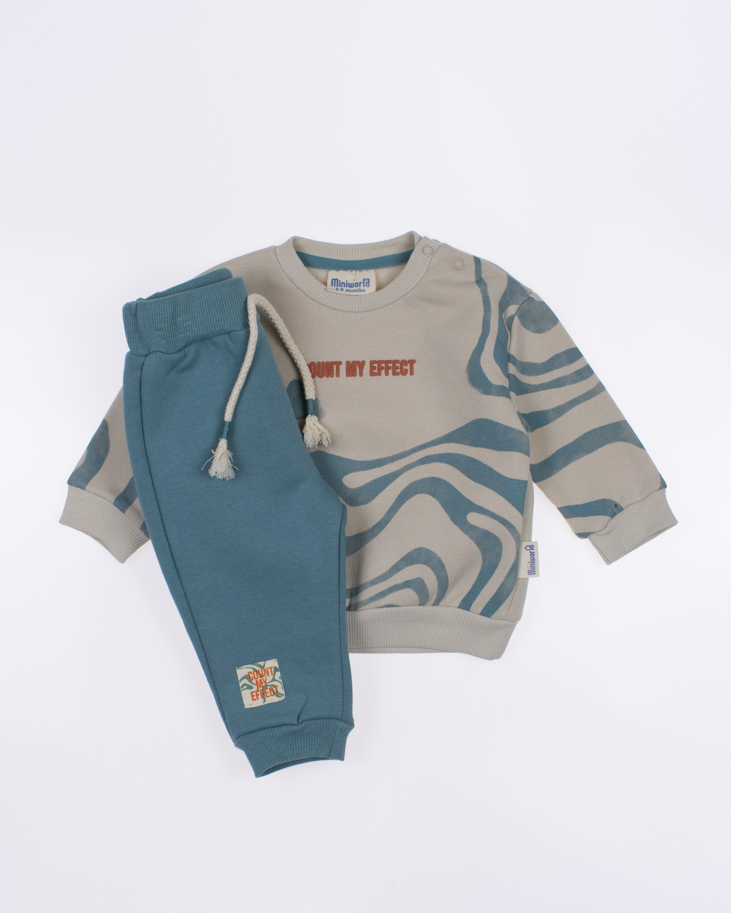 Мы предлагаем оптовые продажи детской одежды производства Турция. Хлопковый костюм  MINIWORLD выполнен из  хлопка с начесом , что гарантирует комфорт и безопасность для самых маленьких детей. Свитшот имеет удобную застежку-кнопки на плече, что облегчит процесс надевания и снятия одежды. Штанишки с мягкими манжетами на эластичном поясе идеально подходят для ношения с подгузником, обеспечивая свободу движений и комфорт. Детский милый принт на костюме поможет развить фантазию и воображение ребенка, делая его образ ярким и запоминающимся. Костюм MINIWORLD - отличный выбор для маленьких модников и их заботливых родителей. Не упустите возможность приобрести этот уникальный товар оптом по выгодной цене!